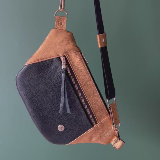 Sleek City Bag – Copper Gold Deer Leather x Black Cowhide