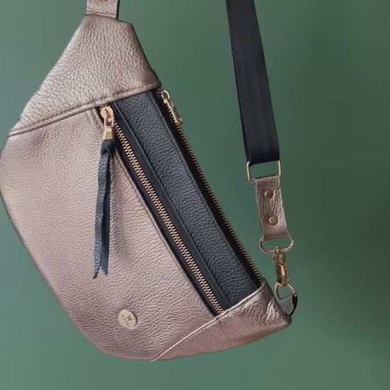 Sleek City Bag – Light Gold Deer Leather x Black Cowhide