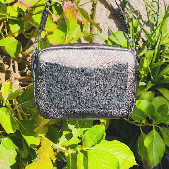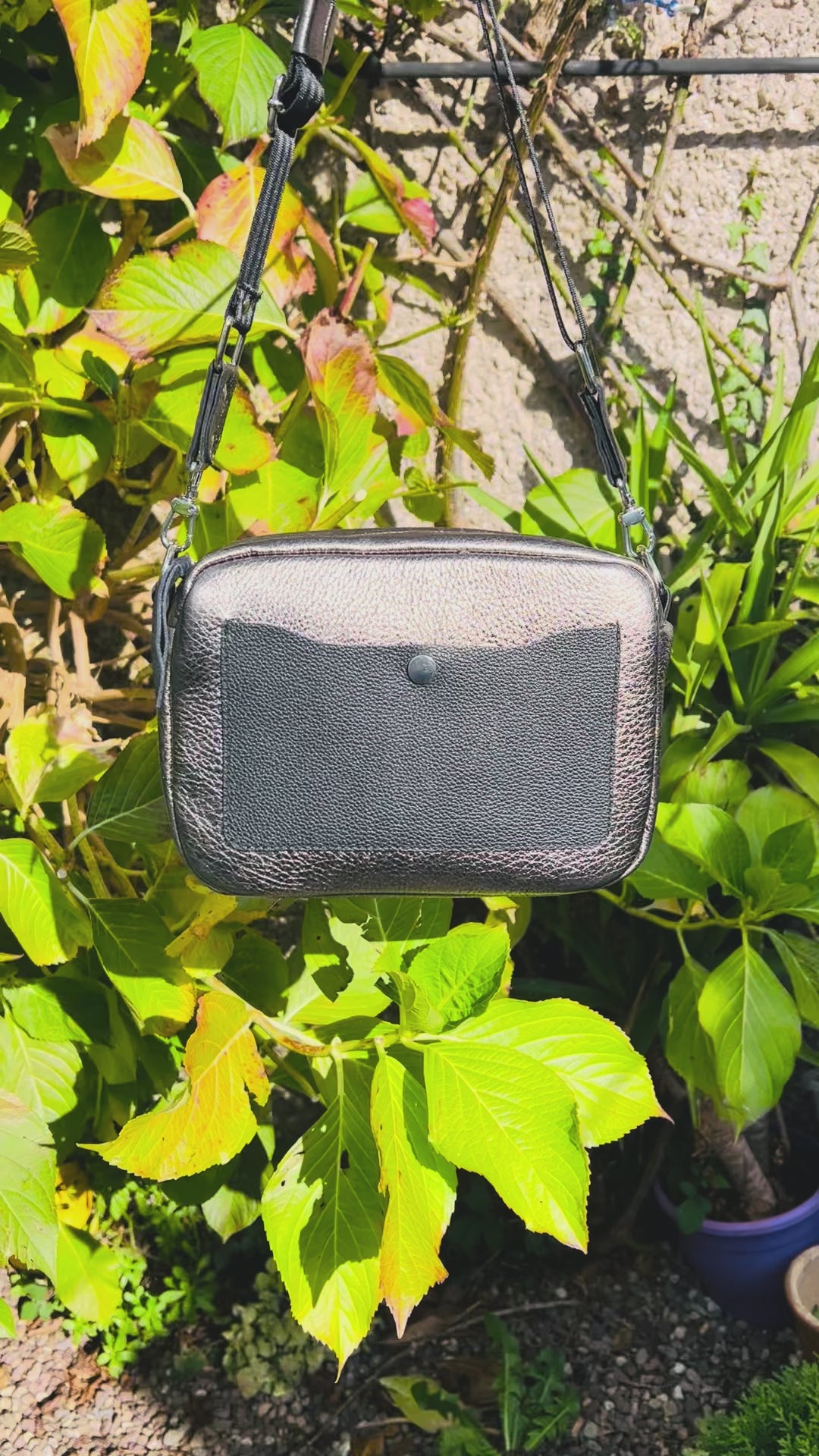 Urban Box Bag – Made from Italian Deer Leather Metallic Gunmetal & Black